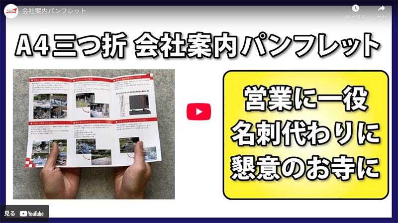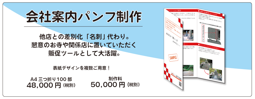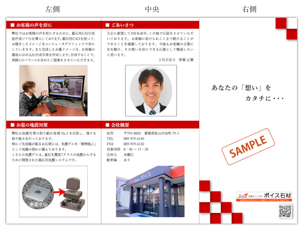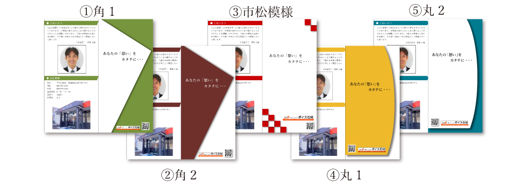 - 三つ折り右側 = パンフレットの表紙となります。(5種類からご選択)