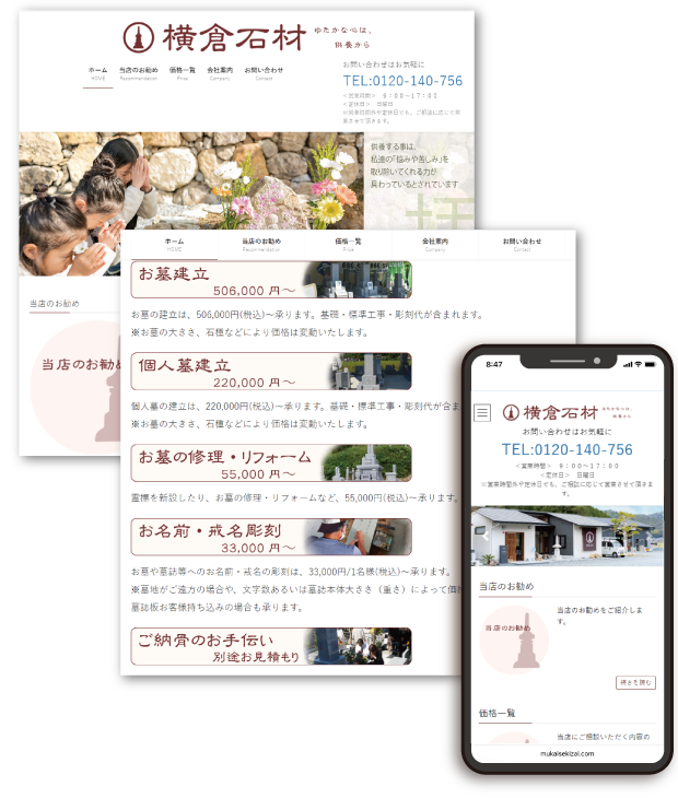 掲載用写真をいただければ、弊社よりご提案して制作いたします。年間48,000円(税別)~